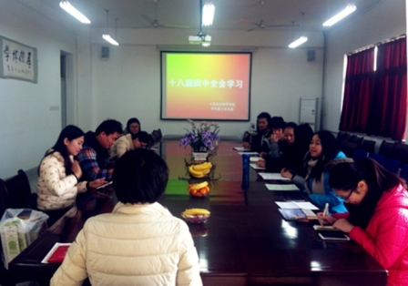2014年12月19日十点,2026世界杯官网员工第三党支部于人文楼三楼会议室召开了主题党日活动,活动围绕学习十八届四中全会精神集中学习并展开讨论。