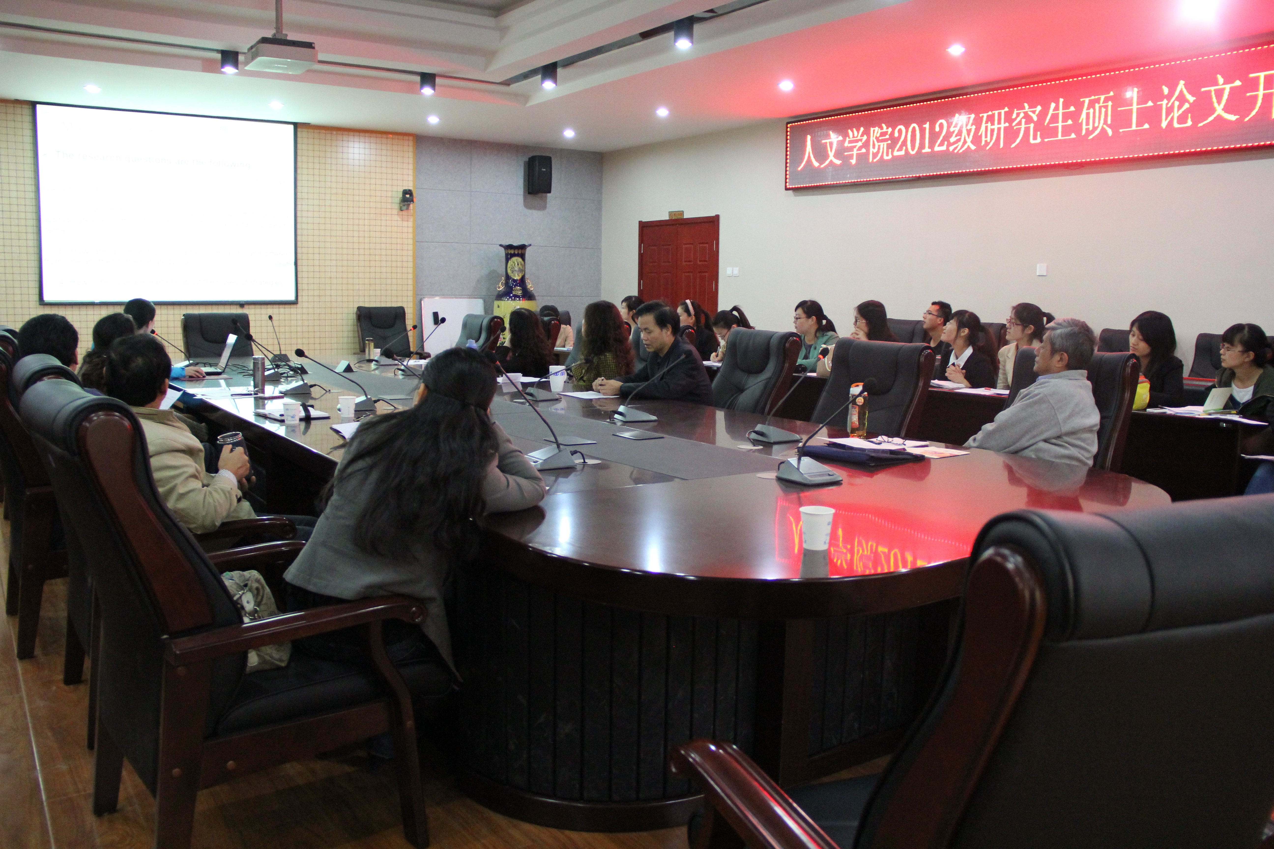 10月25日下午,公司在第三会议室举行12级研究生开题报告会,研究生部特聘专家沈大奇,硕士研究生导师和12级、13级所有研究生参加了本次会议,会议由公司研究生工作部主任陈莉霞主持。