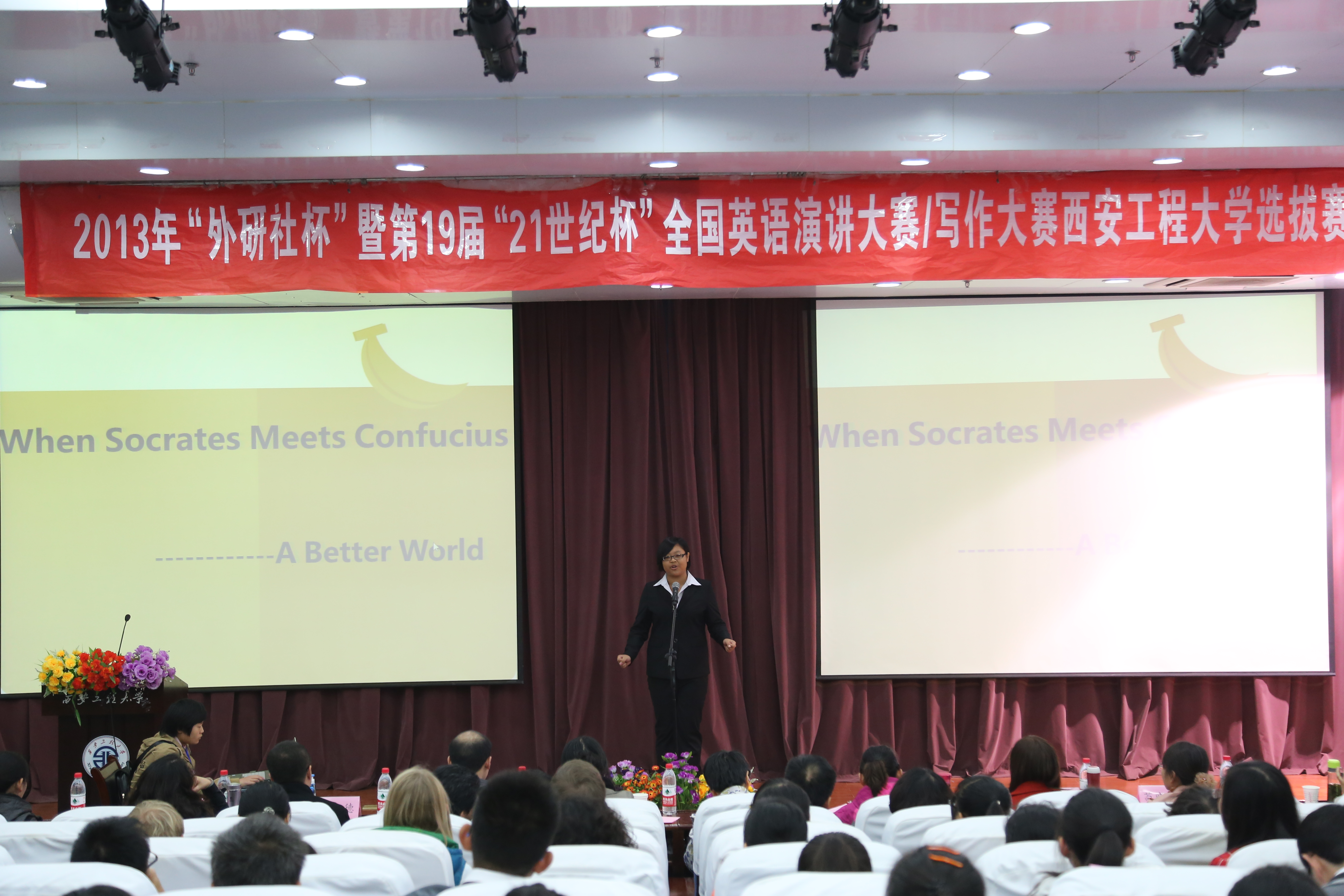 2013年10月21日下午,“2013年外研社杯暨第19届21世纪杯全国英语演讲大赛”复赛在临潼校区D3108教室举行。