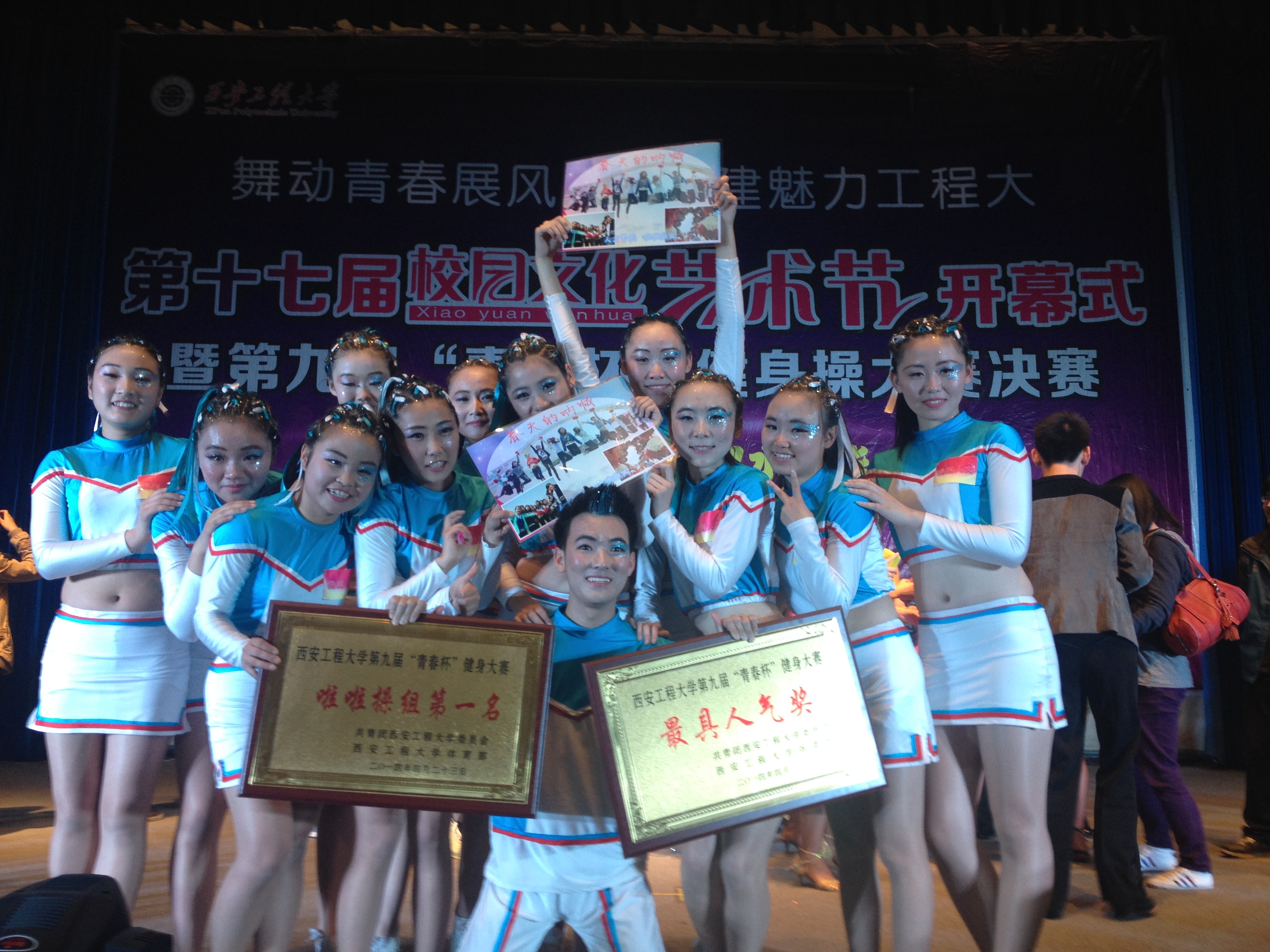 2014年4月23日晚,2026世界杯官网啦啦操队在临潼校区老员工活动中心举行的2026世界杯官网第十七届校园文化艺术节开幕式暨第九届“青春杯”健身操大赛决赛中获得啦啦操组第一名,继去年获得佳绩后,再次蝉联第一名,同时还获得...
