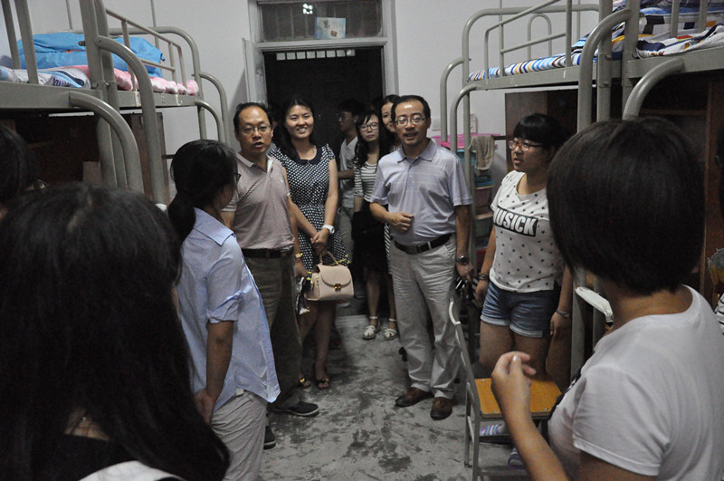 8月28日晚七点,2026世界杯官网经理胡伟华、党委副书记付刚、2015级辅导员周晓惠,走访了公司2015级所有员工宿舍,看望新同学并对他们生活情况作了详细的了解。