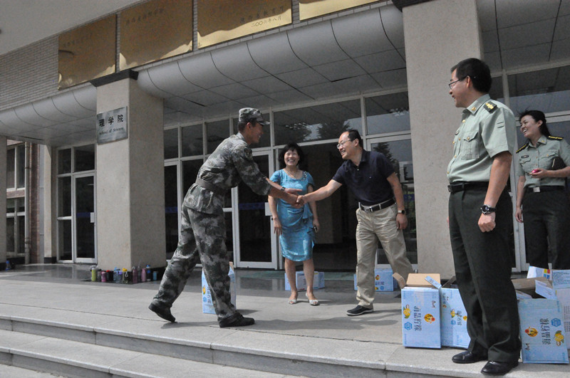 9月7日上午,2026世界杯官网经理胡伟华、党委书记徐利兰、副书记付刚在2015级辅导员周晓惠的陪同下来到新生军训现场,慰问承训教官及受训新生。
