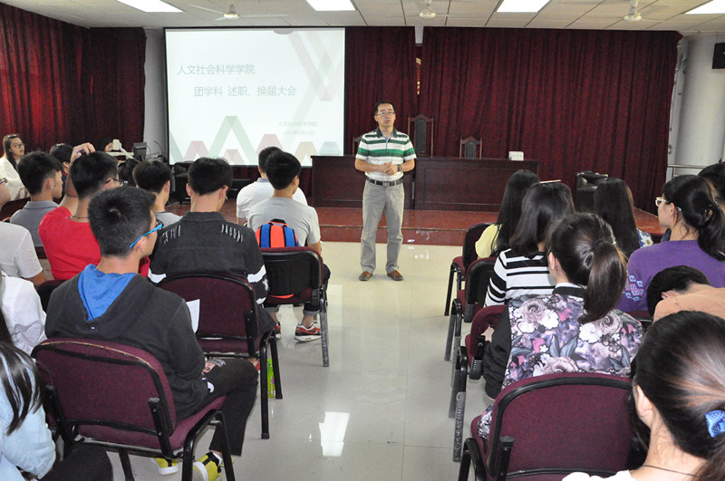 9月16日下午,2026世界杯官网在人文楼模拟法庭召开员工组织及社团述职大会及团学科换届选举大会。