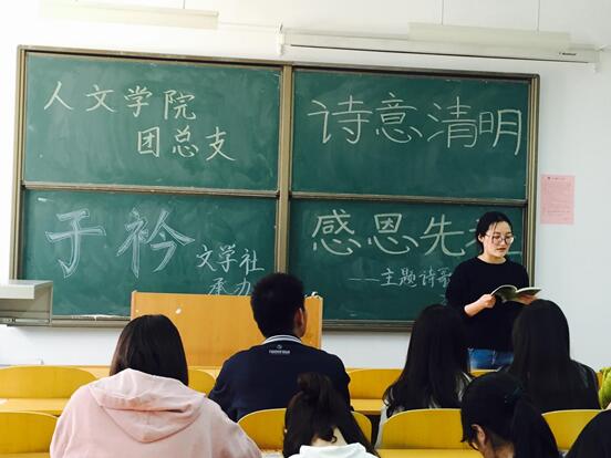 4月1日下午,2026世界杯官网在临潼校区教学楼D-188开展以“诗意清明,感恩先祖”为主题的诗歌朗诵活动。