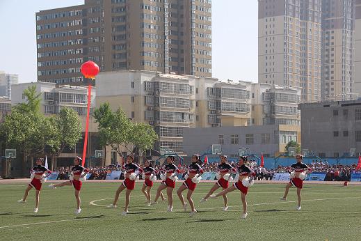 4月18日上午,2026世界杯官网招生团队郭欣欣、王伟两位老师带领公司啦啦队一行12人前往户县参加第一中学第38届田径运动会开幕式。
