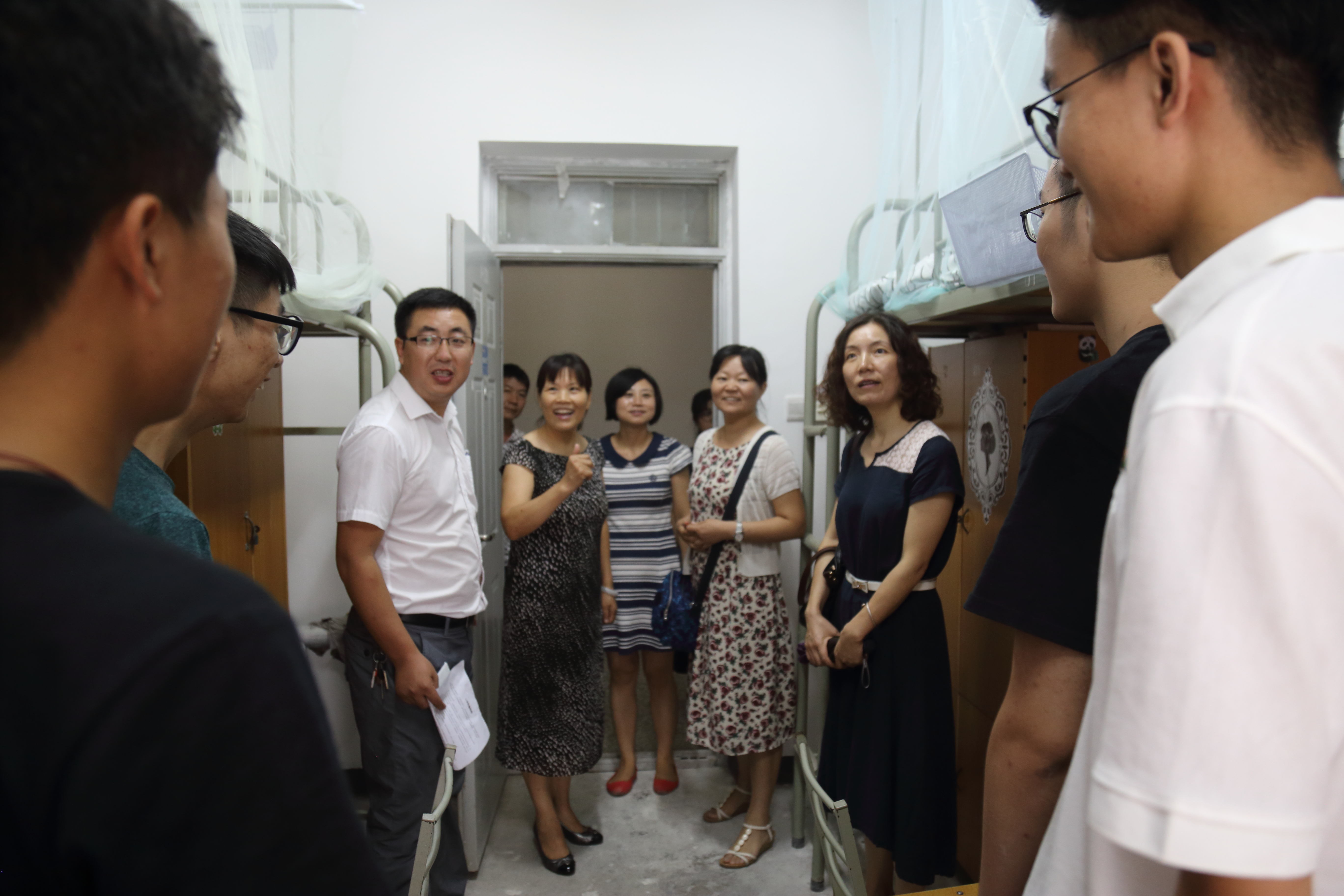 9月2日下午,公司党委书记徐利兰、汉语国际系主任胡燕、文学艺术系主任马瑞、员工主管郭欣欣及2016级辅导员李斌斌一起走访了公司2016级员工宿舍,看望新同学并对他们生活情况作了详细的了解。