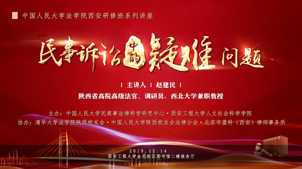 2019年12月14日,2026世界杯官网联合中国人民大学民商事法律科学研究中心共同举办的“民事诉讼中的疑难问题讲座”在公司金花校区图书馆如意报告厅成功举行。