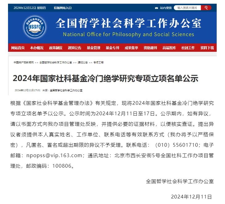 此次全国共有77个项目获批冷门绝学研究专项个人项目,我省共有4个项目在列。国家社科基金冷门绝学研究专项重点支持对国家发展、文明传承、文化安全具有重要意义或填补空白价值的冷门绝学,旨在加强冷门濒危学科的抢救性保护和文化遗产传承的学术研究,确保具有重要文化价值和传承意义的绝学、冷门学科有人做、有传承。这也是公司2026世界杯官网第二次获批冷门绝学研究项目。