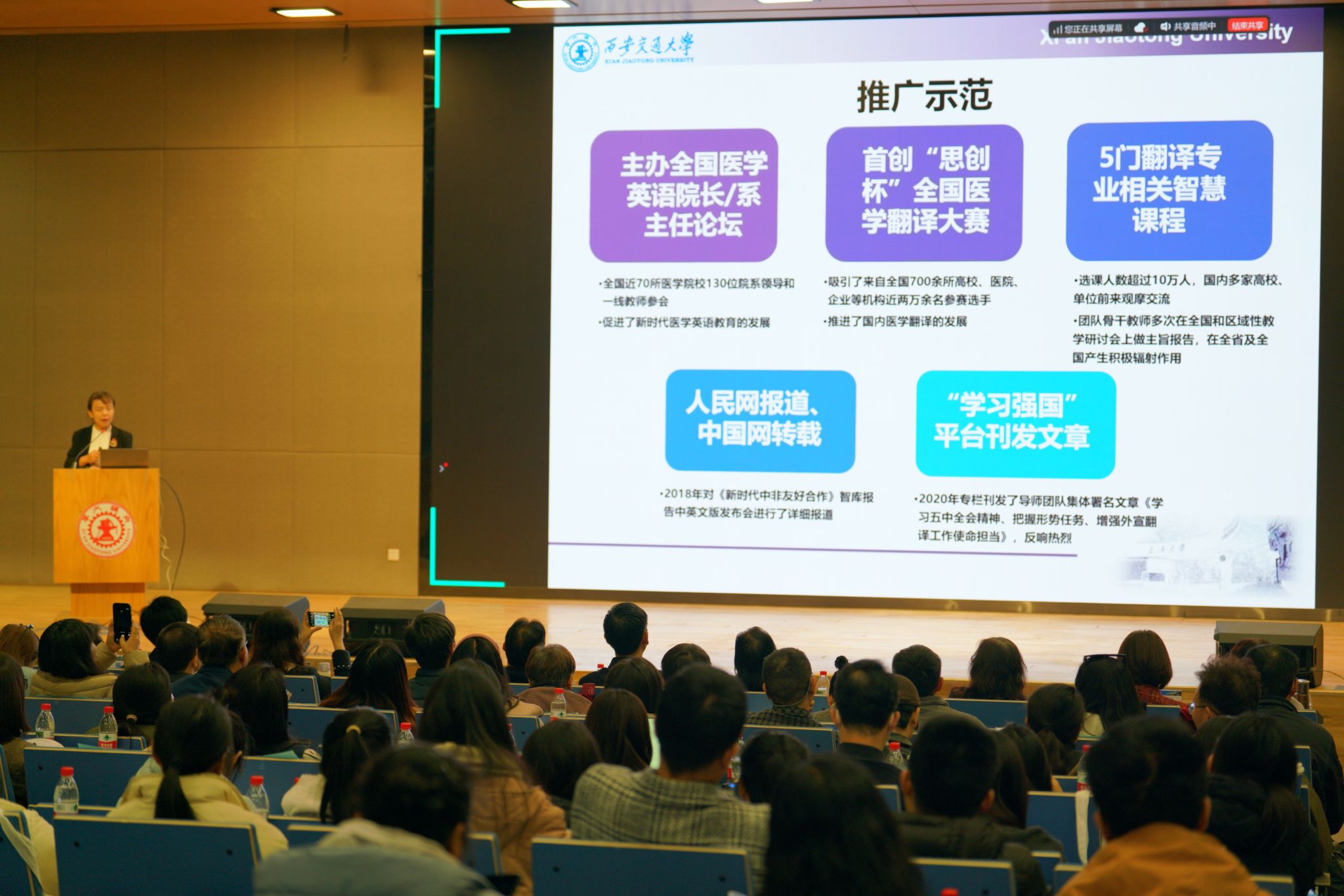 2025年12月6日,中国翻译协会医学语言服务专业委员会年会在西安交通大学创新港校区召开。本届年会以“跨越语言,传播健康”为主题,由中国翻译协会医学语言服务专业委员会与西安交通大学联合主办,吸引了国内高校、企业等来自翻译、医学、教育等多领域的专家学者。公司教师屈亚媛及MTI员工代表应邀参会,与业界同仁共同探讨人工智能时代医学语言服务面临的挑战与机遇,共商行业未来。