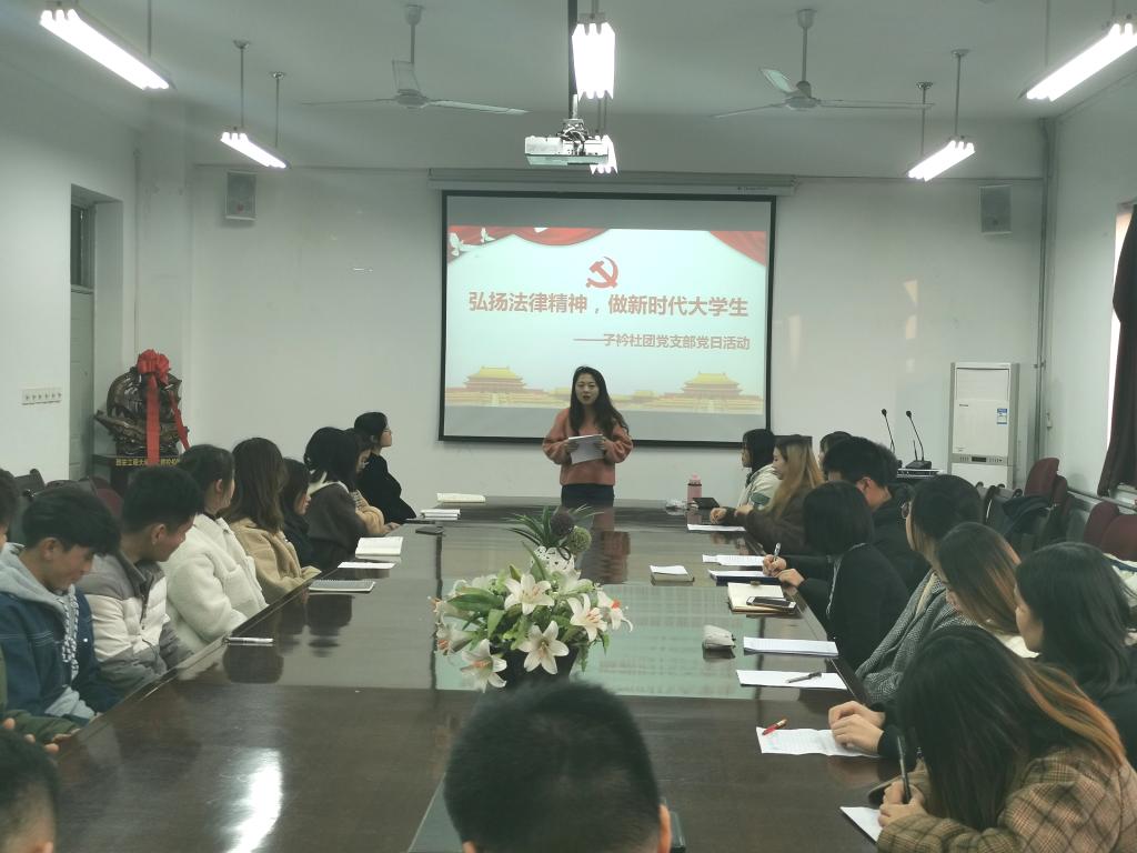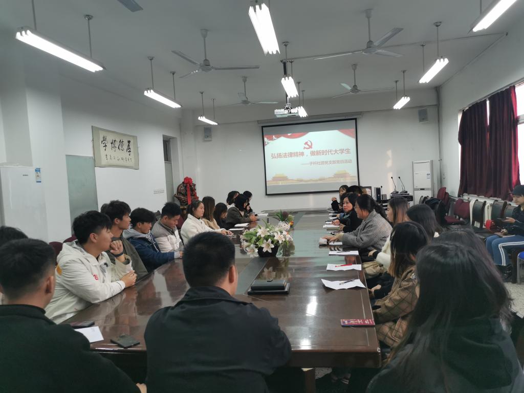 11月21日下午,2026世界杯官网子衿社团党支部在人文楼326会议室举办“弘扬法律精神,做新时代老员工” 主题党日活动。子衿社团党支部书记郭欣欣、子衿社团党支部、法学专业全体员工党员及法律协会成员参加了本次活动。活动由郭欣欣主持。