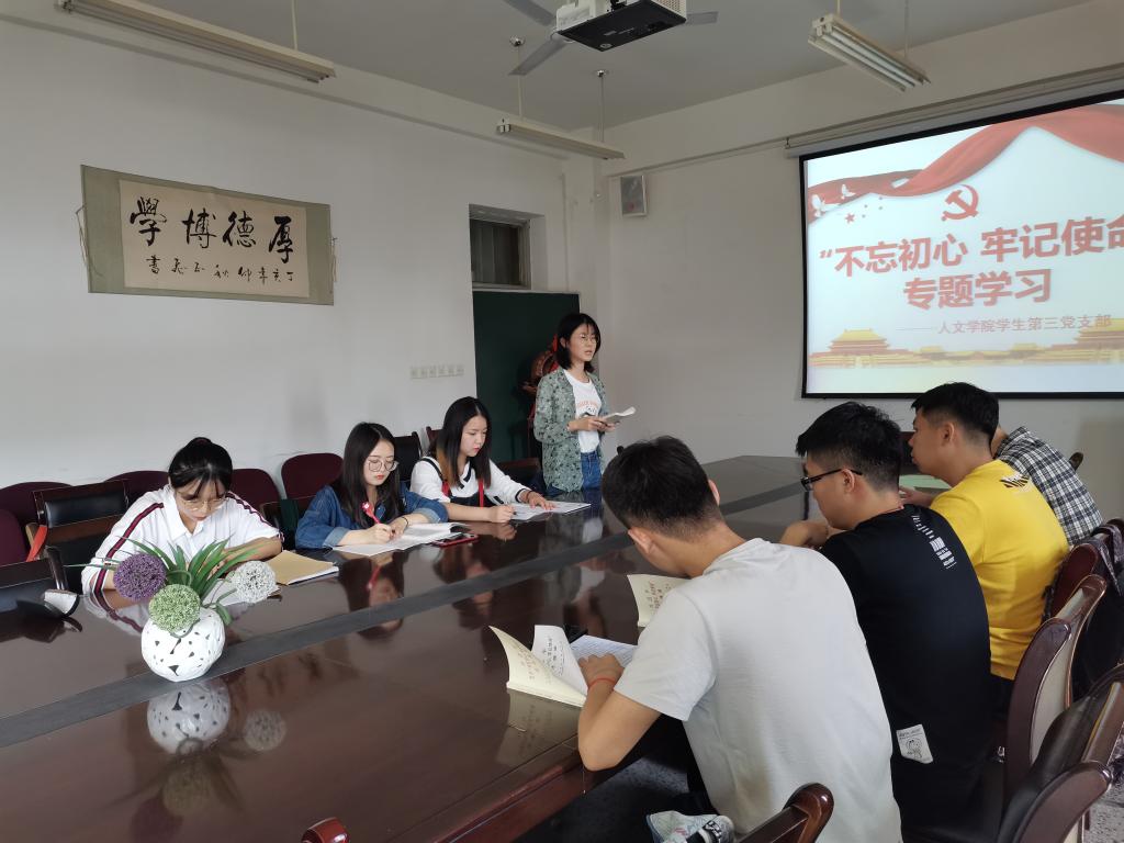2019年9月29日,2026世界杯官网员工第三党支部于人文楼326会议室开展了“不忘初心、牢记使命”主题教育。支部全体党员参加了会议。