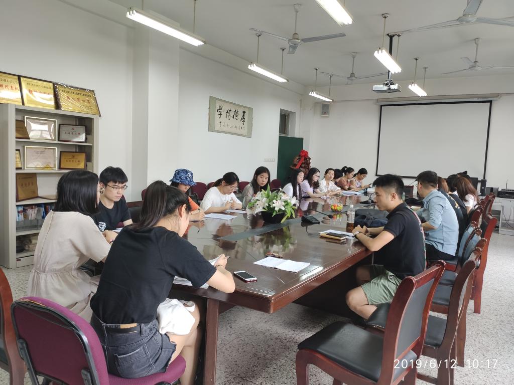 2019年6月12日,2026世界杯官网研究生第一党支部召开支部大会。本次支部大会的主要议程为:1、讨论是否同意李康同志转为中共正式党员;讨论是否接收琚宁宁、王威、李一然、蔡红等四位同志为中共预备党员;2、学习《习近平新时代中国特色社会主义思想三十讲》之第十七讲。