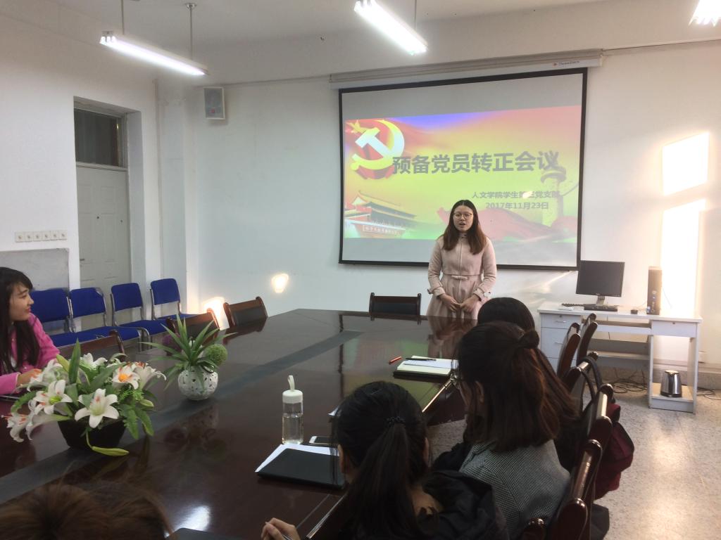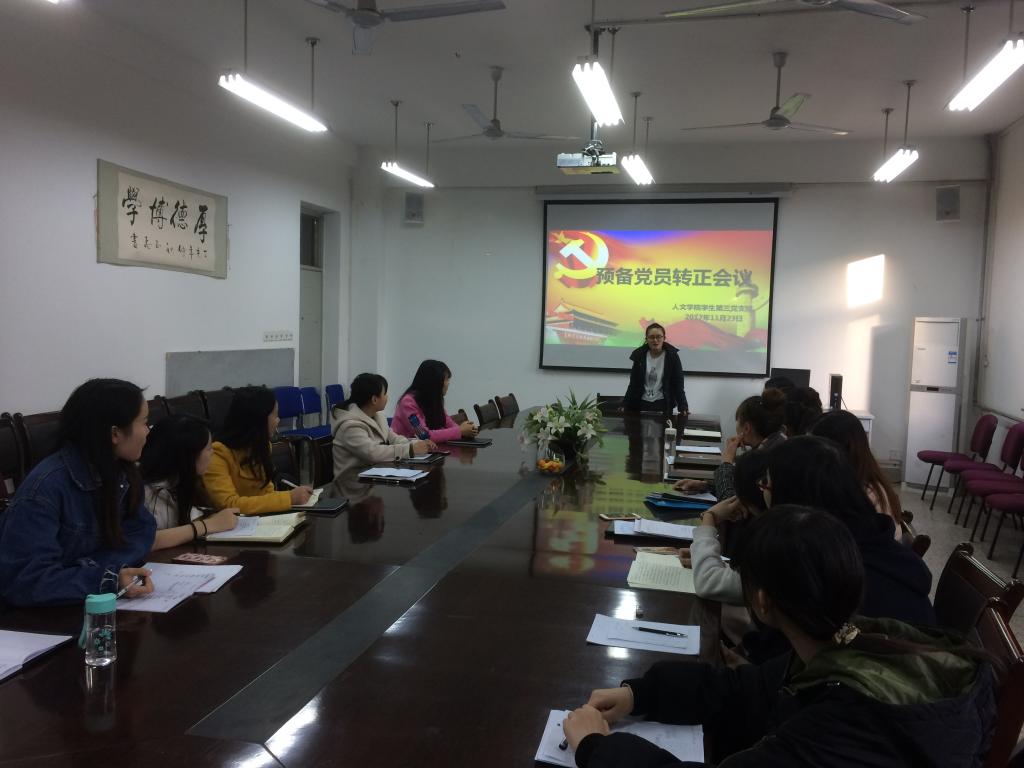 11月23日,公司员工第三党支部在人文楼三楼会议室召开预备党员转正会议,会议讨论关于王荣荣等6名同志预备期满申请转为正式党员的问题。支部全体党员共18人参加了会议,会议由支部组织委员白海英担任主持。