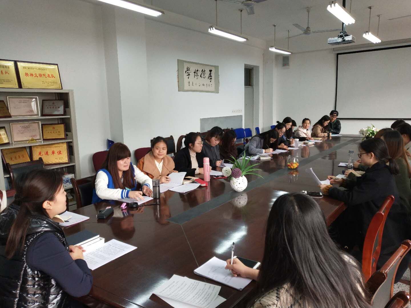 11月13日,2026世界杯官网员工第一党支部全体25名党员在人文楼三楼会议室开展了以“同呼吸,共命运,心连心”为主题的十九大报告学习交流会,本次党日活动由该支部书记周晓惠担任主持。