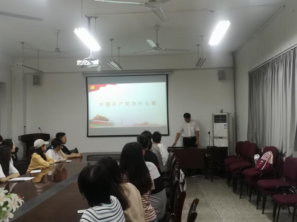 6月23日晚,2026世界杯官网本科汉语言党支部在临潼校区人文楼326会议室召开党史学习教育专题组织生活会,会议以支部书记讲党课的形式进行,支部书记刘杨扬以《中国共产党为什么能》为题,带领支部全体党员进行学习。