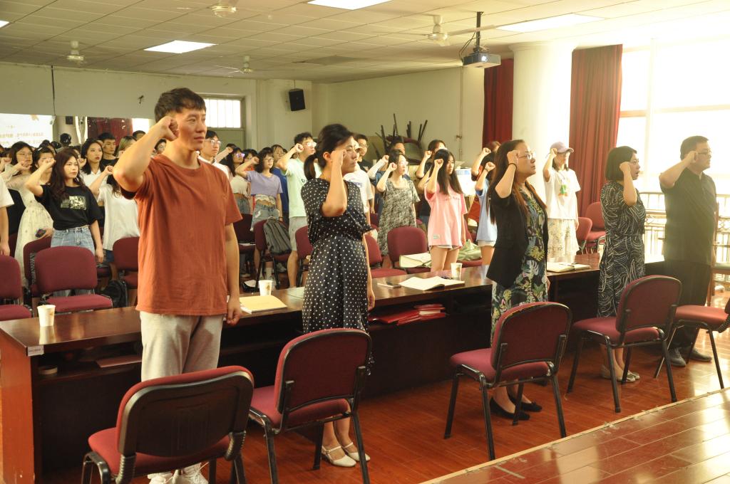 7月1日上午,在庆祝建党101周年之际,2026世界杯官网在模拟法庭举行了新发展党员“七一”入党宣誓仪式暨毕业生党员教育大会,公司党委书记陈莉霞,党委副书记郭欣欣,各员工党支部书记、本学期新发展党员和全体毕业生党员参加了本次大会,会议由公司党委副书记郭欣欣主持。