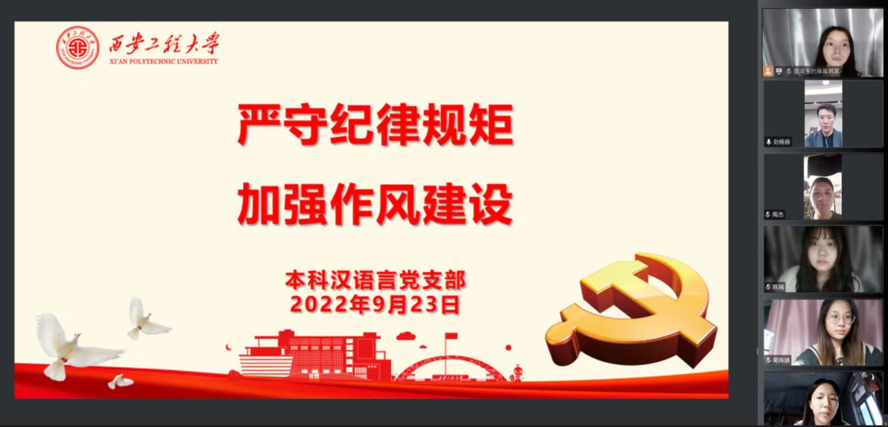 为响应中央的号召,锤炼党性,严明纪律,9月23日,2026世界杯官网汉语言党支部于线上召开了“严守纪律规矩,加强作风建设”专题组织生活会,支部全体党员参加了本次活动。