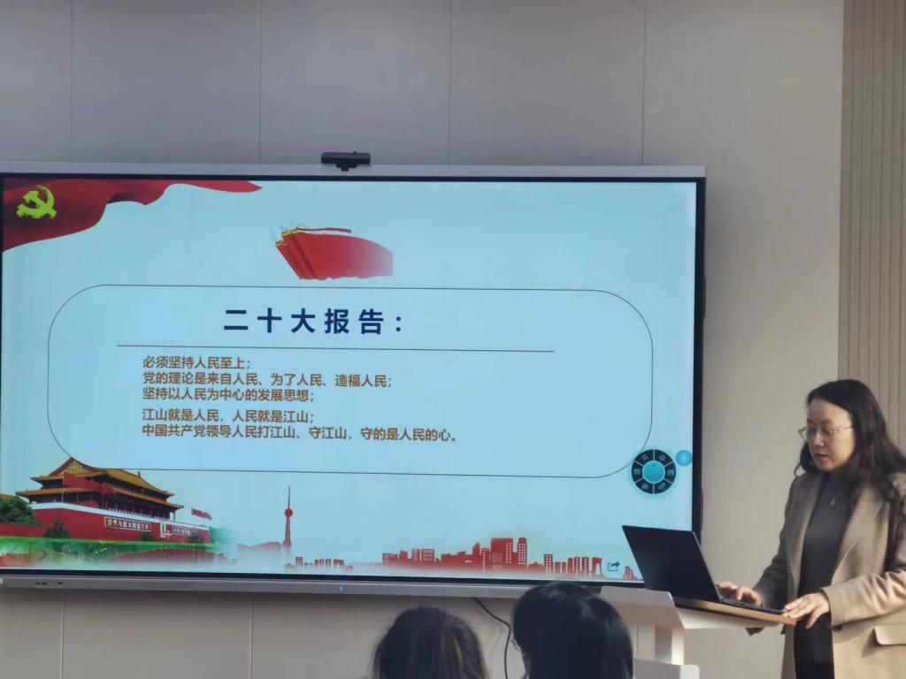 紧接着,陈莉霞带领学员进行了以“不忘初心,牢记使命”为主题的党课培训。她指出:10月16日至22日,中国共产党第二十次全国代表大会在北京胜利召开,习近平总书记在党的二十大报告中强调,党的二十大是我们党进入全面建设社会主义现代化国家、向第二个百年奋斗目标进军新征程的重要时刻,是党和国家政治生活中的一件大事。现在的美好生活,离不开中国共产党的艰苦奋斗。陈莉霞进一步讲述中国共产党是如何由一叶扁舟,发展成巍巍巨轮,党的面貌发生了如此巨大的变化,中国从站起来、富起来到强起来,这背后到底依靠的是什么?陈莉霞从科学的理论指导、坚定理想信念、强大的组织优势、坚实的群众基础以及彻底的自我革命五个方面,向大家具体阐述了中国共产党领导下中国的迅猛发展。
