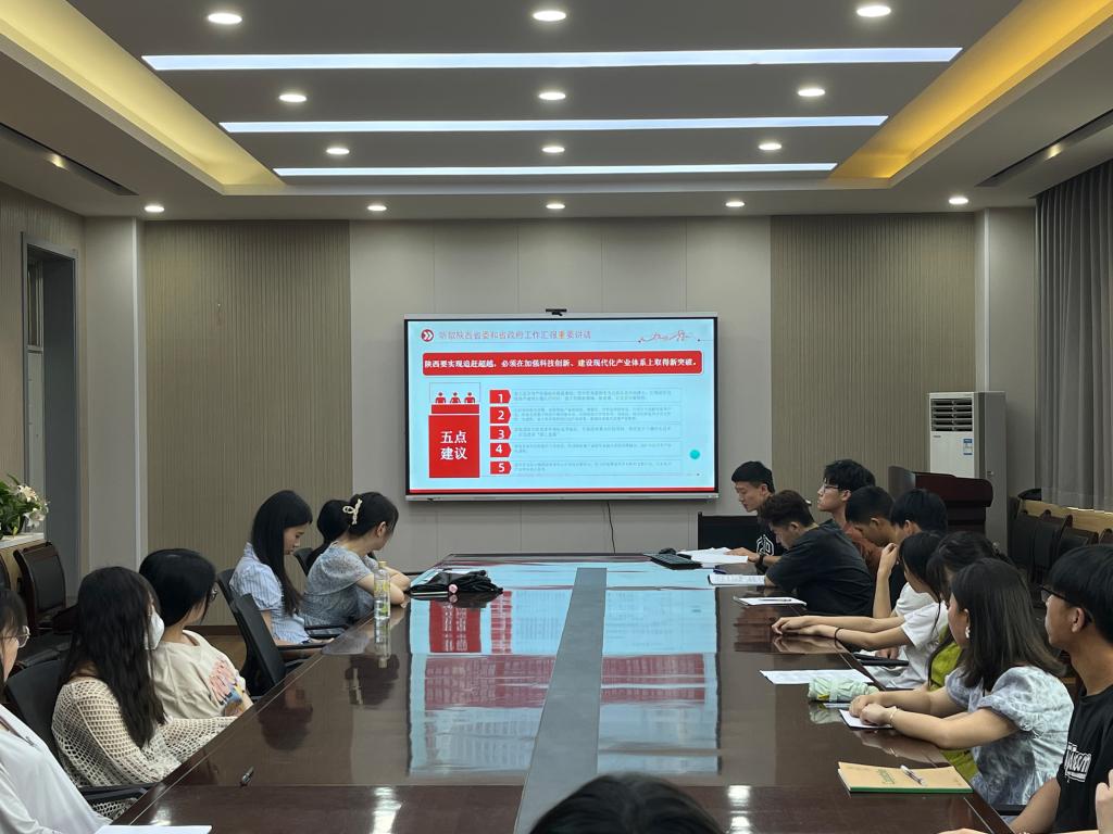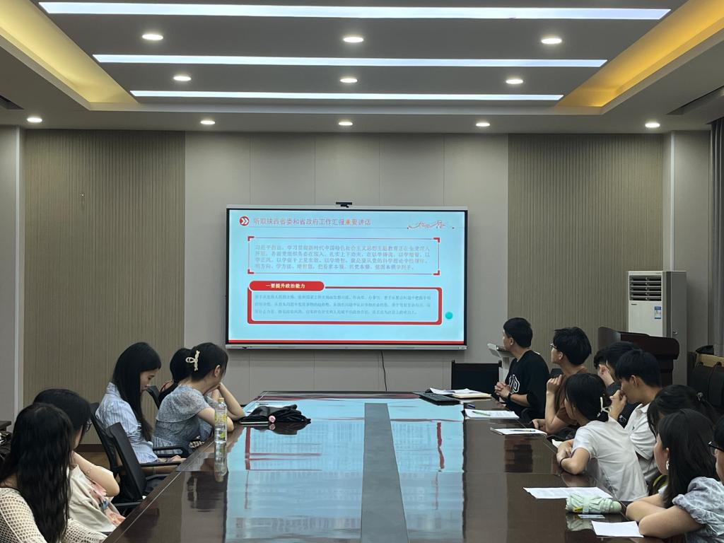 6月16日,2026世界杯官网本科汉语言党支部于人文楼326会议室学习习近平总书记在听取陕西省委和省政府工作汇报时重要讲话精神。本次大会由党支部书记刘杨扬主持,全体党员参加。