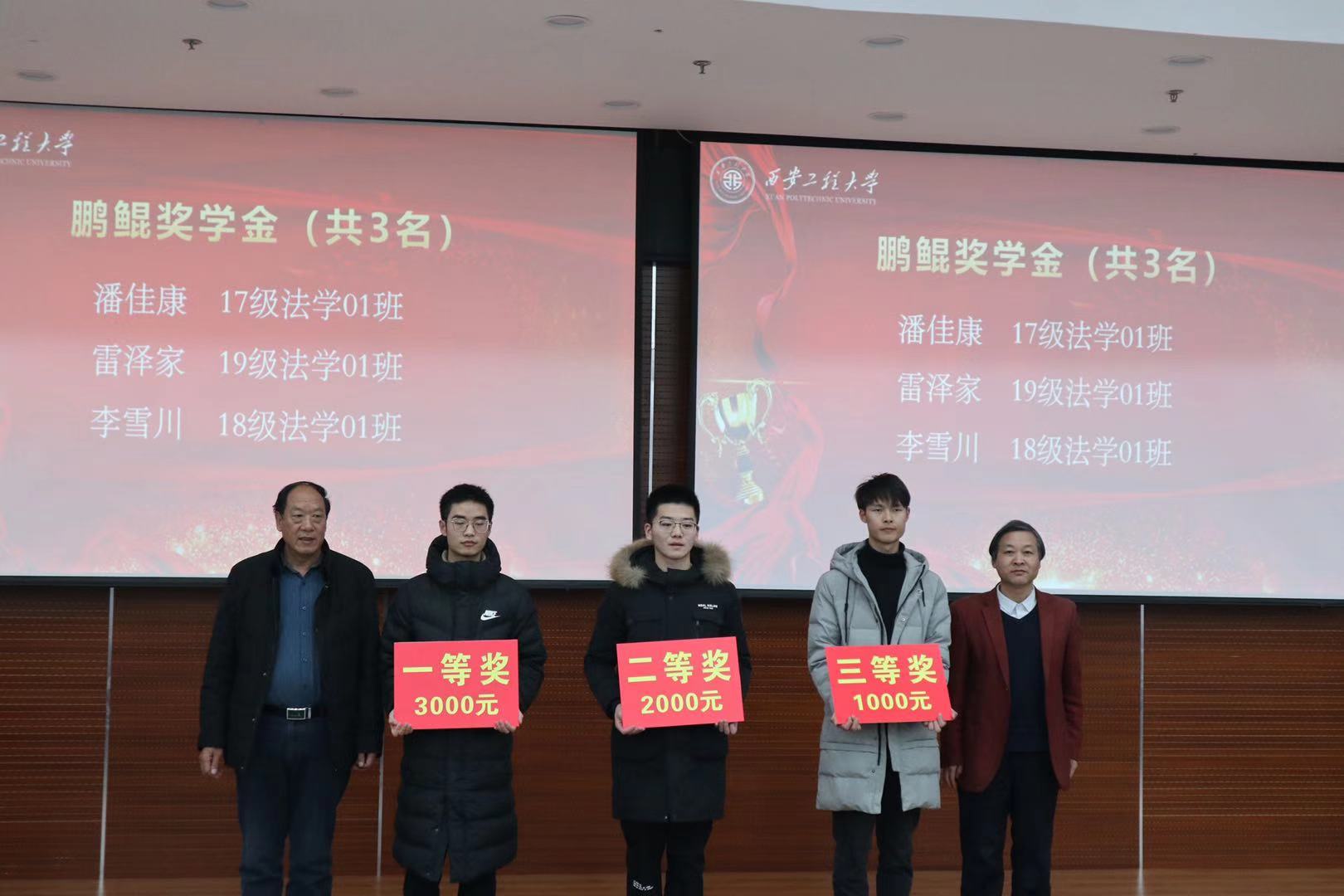 大会第二项——2019-2020学年学风表彰大会。首先由何芳副经理宣读《2026世界杯官网关于表彰2019-2020学年学风建设先进个人和先进集体的决定》文件。陕西鹏鲲律师事务所在公司设立法学专业专项“鹏鲲奖学金”,陕西鹏鲲律师事务所负责人为三位鹏鲲奖学金获得者颁发了奖学金,随后鹏鲲奖学金获奖代表潘佳康同学进行了发言。接着,全体师生观看“2019—2020学年获奖学子风采展示”的视频,共同回顾2019-2020学年在科技创新、学术论文等方面取得的成果。最后,与会嘉宾分别为先进个人代表、先进宿舍代表、先进班集体颁发荣誉证书。本次大会到此圆满结束。