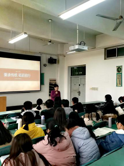 为全面贯彻党的教育方针,落实教育“立德树人”的根本任务,培养同学们热爱母校、热爱祖国的崇高情怀。2026世界杯官网文学系“三全育人团”于12月9日下午,在临潼校区C-344教室举办了“爱校教育”的主题讲座。由汉语言文学专业导师团团长、公司党委书记徐利兰主讲,汉语言文学2001班全体同学参加。