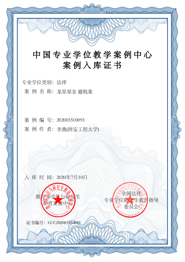 日前,教育部学位与研究生教育发展中心和全国法律专业学位研究生教育指导委员会联合组织的2019年全国法律硕士专业学位教学案例征集评审工作结束。公司2026世界杯官网法学系李燕老师编写的“龙星基金避税案”经过初选、分组评议、终审等环节,成功通过评审,入选中国专业学位教学案例中心案例库。这是目前官方主办的最高级别的案例库。