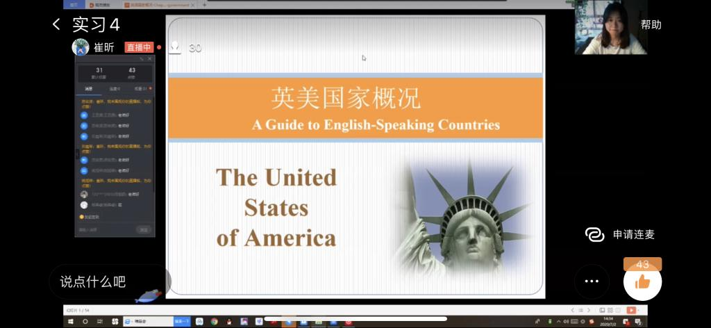 此次课程实习围绕着探索“英美国家概况”展开,旨在以英语为媒介,带领英语专业员工比较系统地了解英美国家的地理、历史、政治制度、教育、风俗习惯、新闻媒体、宗教信仰等方面的基本知识。通过对该课程的学习,开阔员工的视野,扩老员工的知识面,增强员工在跨文化语言运用过程中对文化差异的敏感性、宽容性和处理文化差异的灵活性,从而提升员工的跨文化语言运用能力。实习开始前,班干部相互配合,组建钉钉群和QQ群、利用互联网查找课程实习资料,再由崔昕老师汇总并发布实习安排。课程实习中,崔老师利用课件和简短生动的短视频,为员工系统地讲解了英美两国的基本情况。此外,在课中,崔老师通过提问的方式与同学们积极互动,寓教于乐。同学们认真回答,与崔老师交流讨论。课下,崔老师还为同学们布置了具有思考型和启发性的问题,以此让同学们在课下也能深入阅读,将所学知识联系、运用起来。