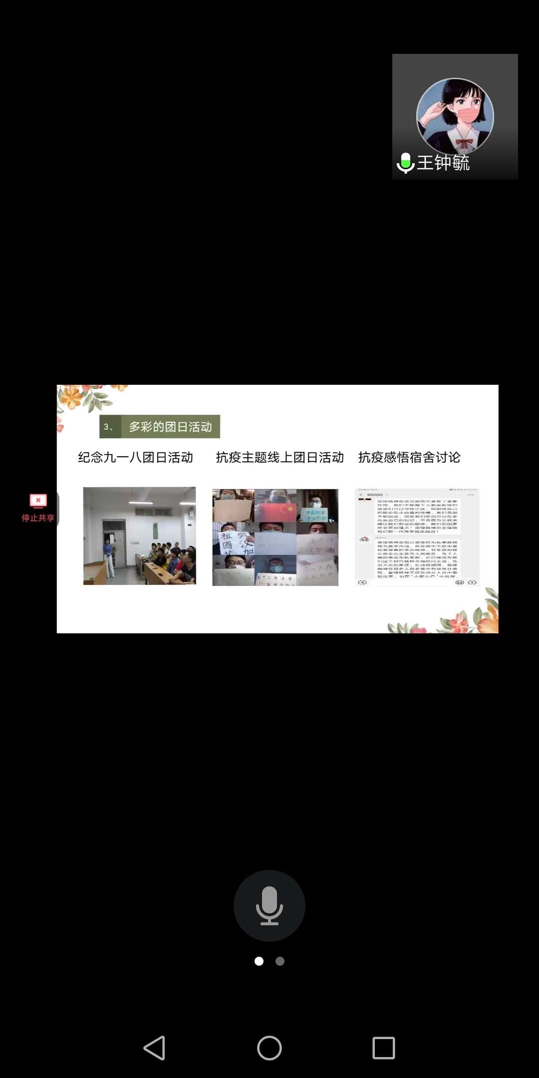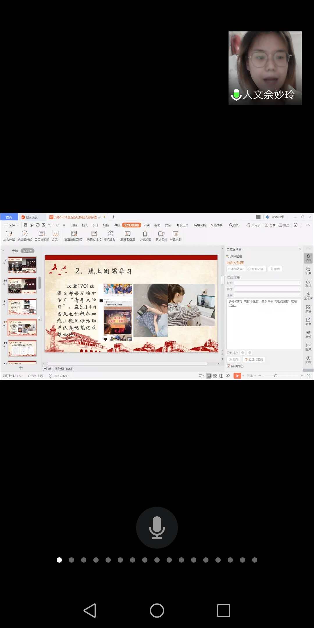 5月8日,经公司初步评审,最终评选出五个团支部参加此次答辩会,分别是英语1701团支部、汉语国际教育1701团支部、英语1801团支部、汉语国际教育1801团支部以及法学1901团支部。各团支部准备充分,团支书们依次通过“共享屏幕”进行了ppt汇报答辩,他们从制度建设、支部活动、团员风采等多个方面介绍了支部的基本情况。通过详细的解说,屏幕前的师生领略到了各个团支部的特色和风采。
