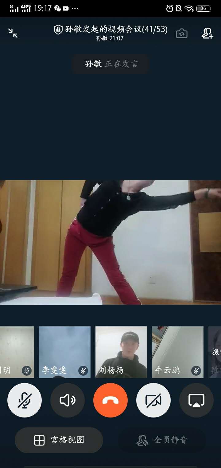 首先,刘杨扬说明此次活动的目的与要求,并希望通过此次活动,同学们能够利用课余时间加强身体锻炼,保持自身免疫力。其次,孙敏老师通过视频线上教学的方式,带领大家学习了“形体拉伸操”及“居家锻炼健身操”,有效的缓解了大家因久坐、低头看手机引起的腰部、颈椎不适等问题。在互动环节,员工们针对感兴趣的健身话题与孙敏老师进行了热烈的交流。最后,孙敏老师向大家提出两点要求:一是健康的体魄才是抵抗疾病的良药,大家应学会在有限的条件下,运用合理、科学的方式进行自我锻炼,以达到提高身心健康的目的;二是作为当代老员工在特殊的时期里,更应坚持爱国和爱党、爱社会主义高度统一,努力学习知识,不断奋斗,为未来的发展打下坚实的基础。
