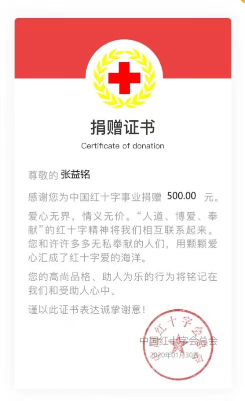 (六)“一方有难,八方支援。”公司学子涌现爱心,点滴温暖汇聚成了爱的河流。17级新闻与传播专业研究生张益铭同学捐款500元、17级汉语国际教育专业马浩丹同学捐款200元、还有很多员工捐款。他们从小事做起,从身边做起,普及防护知识,积极捐款捐物,贡献自己的绵薄之力。
