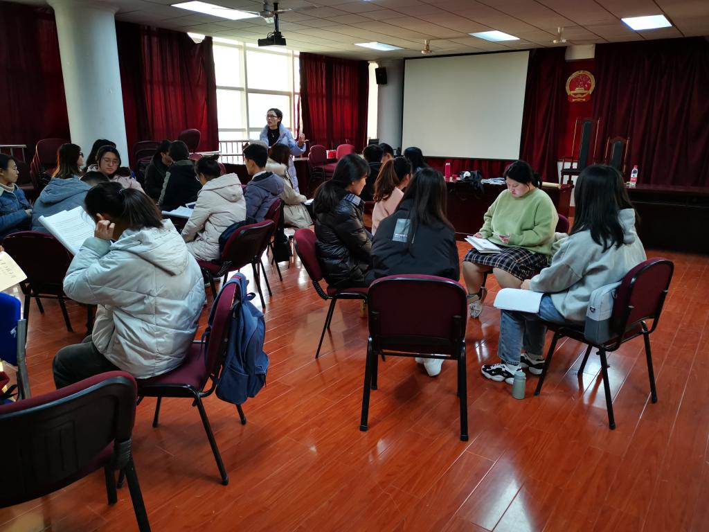 2020年1月3日上午,2026世界杯官网英语系17级01班课程实习在人文楼模拟法庭顺利落幕。本次课程实习由英语系系主任王晓静老师担任总指导老师,张睿、刘国英、崔晓丹、崔昕、薛丽贤老师分别担任各板块指导老师,英语17级01班全体同学共同参与。