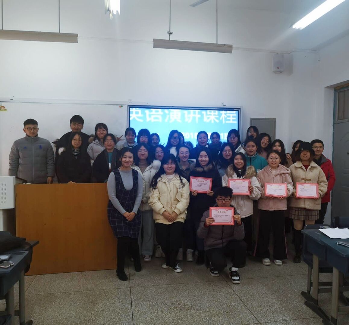 此次实习围绕“英语演讲”这一主题展开,旨在通过系统的循序渐进的英语演讲练习,帮助员工进一步领悟英语思维模式,提升英语表达能力和自信心,并逐步掌握较为复杂的演讲理论与技巧。实习开始,指导教师以提问的方式带领员工回顾了演讲课所学,并以5个TED演讲视频和5个经典电影演讲桥段为例,与同学们进行了演讲相关知识的探讨与学习。其次,在实习中,崔老师不断鼓励员工运用所学过的演讲知识,结合已完成观看的演讲视频,积极撰写演讲观后感和演讲技巧总结。最后,同学们结合演讲理论知识,分组对观看的演讲视频进行模仿创作表演,通过对视频中人物语音语调和肢体语言以及面部表情的模仿,将所学过的演讲技巧运用于实际。在这次实习中,每位同学都热情高涨且严谨认真,积极配合老师和员工干部的安排。经过大家的共同努力,本次实习顺利完成。实习结束后,18级英语01班全体同学在C-574合影留念。