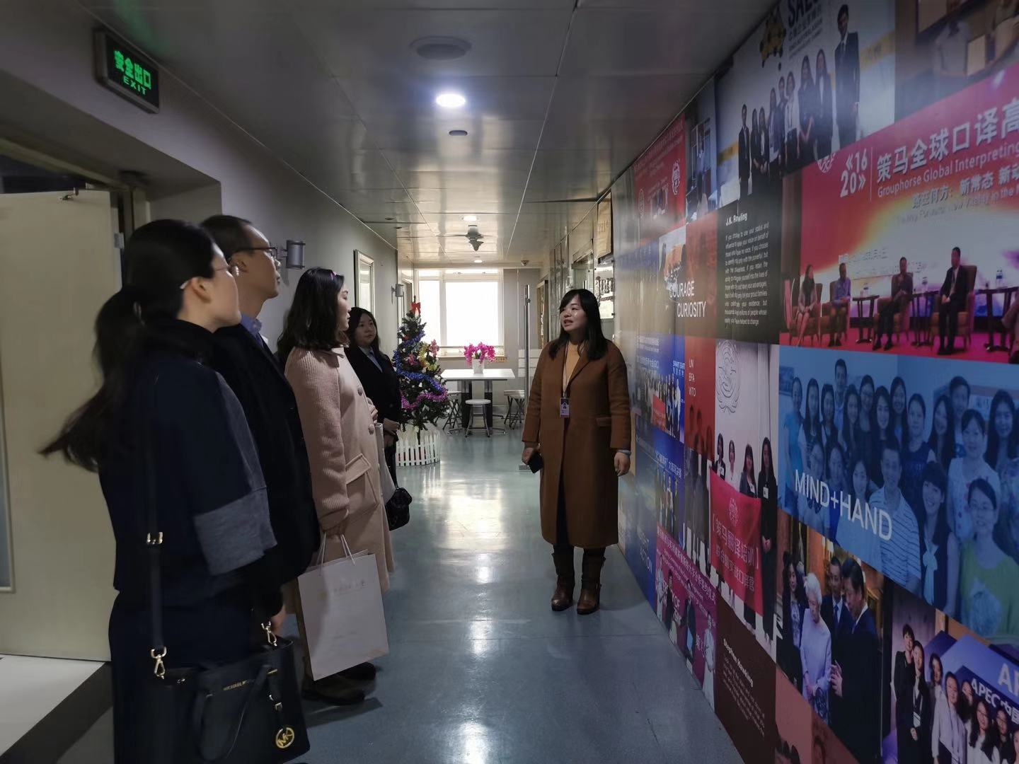 上午10点左右,王伟一行在杭州策马翻译有限公司负责人郭艳卿女士、上海策马翻译有限公司负责人张丽女士、策马全球翻译中心负责人周敬棋先生等的陪同下,参观了上海策马翻译有限公司的培训部、翻译部及多功能教室等,全方位了解联合国官方翻译服务供应商—策马翻译公司的企业文化、团队力量、核心业务以及校企合作情况。