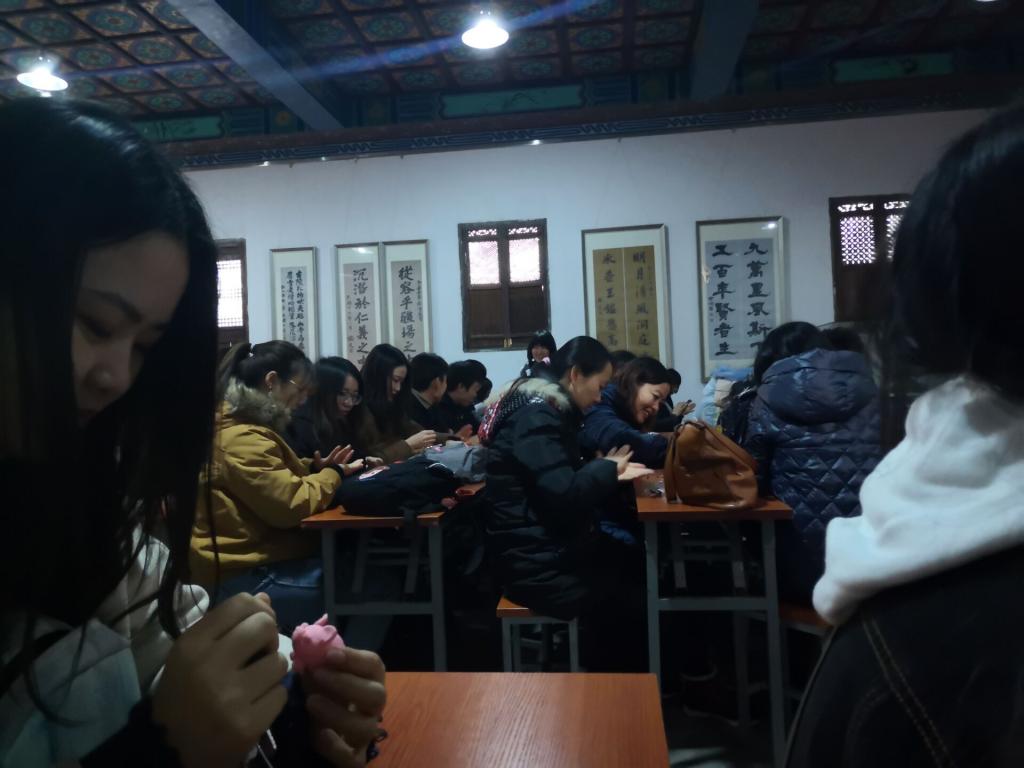 博物院的正门口镌刻着“地通乾元”四个大字,骨力遒劲,雄浑厚重,蕴含着深厚的历史美感。拥有“地上兵马俑”之美称的栓马桩,约8600根栓马桩高低不齐,记载着我国精美的民间石雕石刻艺术。几所明清时期的古民居,古色古香的建筑风格和内部装饰,导游生动流畅的讲解,丰富了同学们对于明清时期历史的理解和民俗文化知识。激动人心的华阴老腔,豪迈吼腔震彻心扉,同学们积极踊跃参与,老腔教学和展示,贴身心的感受秦腔的雄浑。接下来,参与了中国结教学,剪纸教学,面塑,拓印等项目。体验过程中,同学们认真投入,老师们也积极参与,活动氛围融洽,同学们学习制作民俗艺术作品,在制作过程中感受到了中国人民的集体智慧和民俗文化。