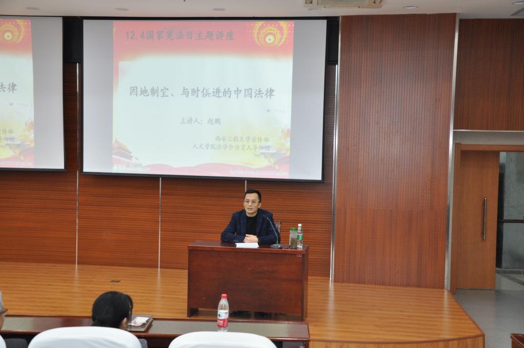 下午14:30,在图书馆二层报告厅举行的“因地制宜、与时俱进的中国法律”宪法日主题讲座中,法学专业教师赵鹏作为主讲人,针对“宪法的历史发展、基本内容以及宪法本土化”等问题对同学们进行了详细的讲解,促使大家更好的认识宪法、学习宪法,从而增强自身法律素养。