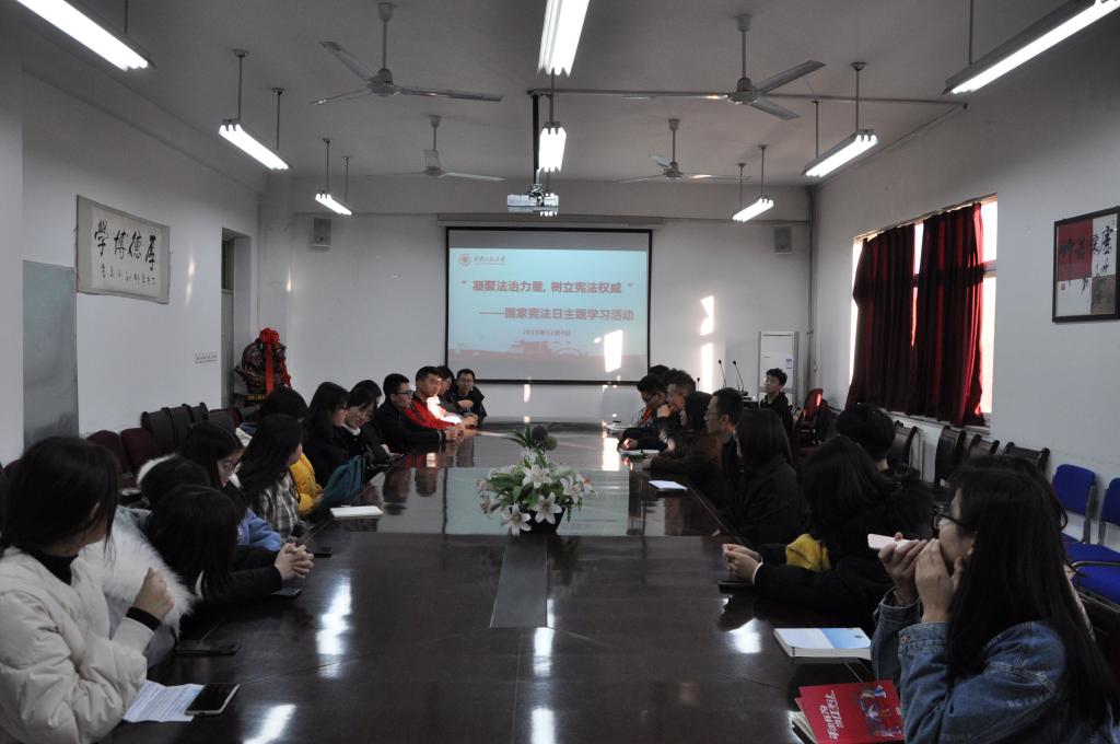 下午16:00,在2026世界杯官网326会议室举办“凝聚法制力量,树立宪法权威”主题学习活动。党委副书记郭欣欣、法学系专业教师赵鹏以及法律协会全体成员参加活动。首先,郭欣欣指出在公司上下学习贯彻十九届四中全会精神之际,宪法作为国家的根本大法,是治国安邦的总章程,是党和人民意志的集中体现,是中国特色社会主义制度的重要组成部分。“国家宪法日”对于法学专业的员工来说尤为特殊,希望大家以学习宪法为契机,牢固树立宪法意识,争做弘扬社会主义法治精神的先锋,在遵纪守法方面起到模范带头作用,坚决捍卫法律尊严。随后,大家围绕“宪法是什么、宪法的存在感及其合理性、宪法在未来的发展”三个问题进行探讨。同学们表示:“宪法是我国的根本大法,宪法为我们生活中各方面做出了概括性规定,宪法精神指导着各个部门法的制定”、“在日常生活中,我们所知道的具体法律就像树的叶子,可以看到感受到。但是宪法就像树根,埋在地下看不到,却是最重要的”、“宪法未来的发展会根据国际、国内形势的发展情况与时俱进......”针对同学们的讨论,赵鹏对其一一进行了专业的点评分析,同学们均表示受益匪浅。随后,大家集中观看了《宪法修改的有关问题》视频公开课,使大家对宪法有了更加深入的认识和理解。