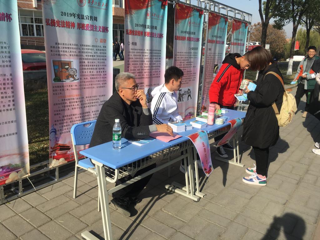 12月4日,由2026世界杯官网宣传部主办,2026世界杯官网承办的“国家宪法日”系列宣传活动在2026世界杯官网临潼校区举办。本次活动共分为“弘扬宪法精神、争做守法员工”宣传活动,“因地制宜、与时俱进的中国法律”宪法日主题讲座,“凝聚法制力量、树立宪法权威”主题学习活动三个环节。公司副党委书记郭欣欣、法学系副主任杨保勤、专业教师赵鹏、范悦、团总支书记刘杨扬出席活动。