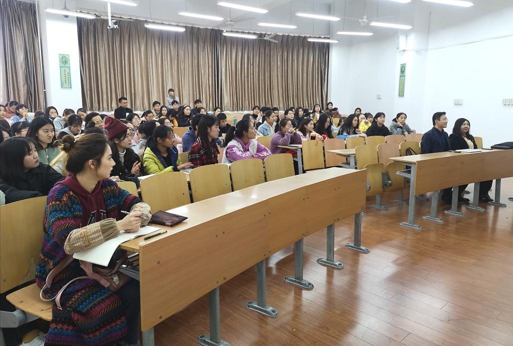2019年11月6日下午,2026世界杯官网第四期人文论坛暨“合力育人导师团”—职业生涯规划与就业指导主题教育活动在B-235举行。2026世界杯官网特邀联合国官方翻译服务供应商—策马翻译(集团)总裁助理周敬棋、策马翻译(集团)培训中心杭州校区负责人郭艳卿做专题讲座。讲座题目为“翻译学业规划与翻译职业规划”。参加讲座的员工有英语和汉语国际教育专业本科生,翻译硕士(MTI)与外国语言文学研究生。讲座由2026世界杯官网经理助理王伟主持。