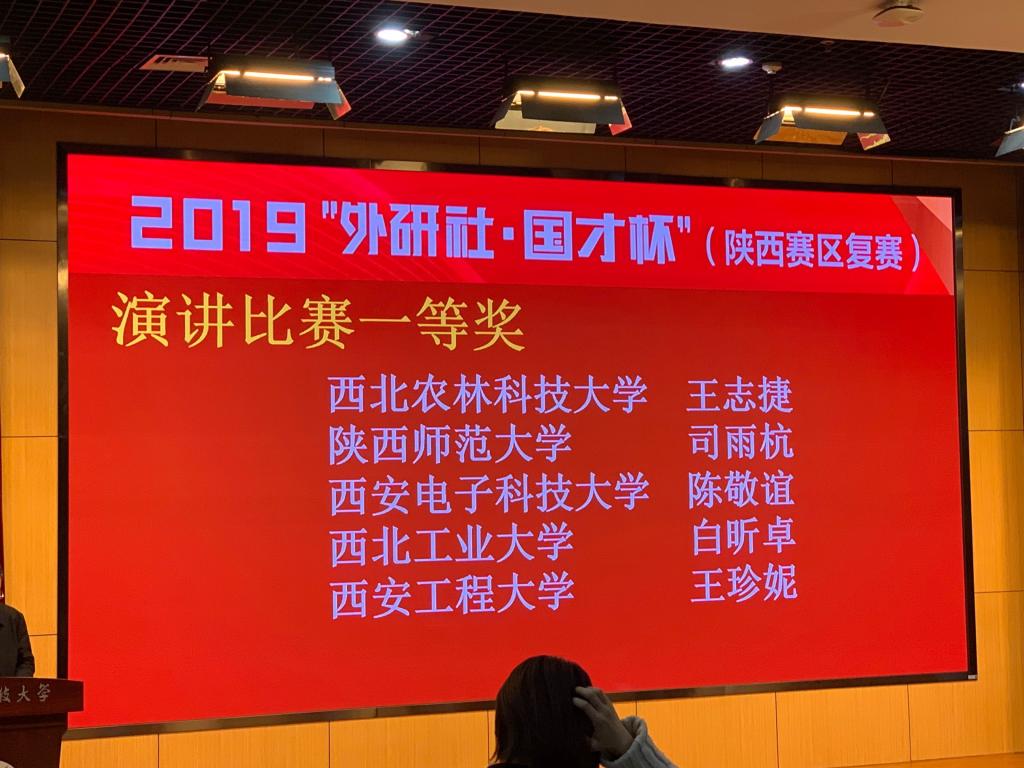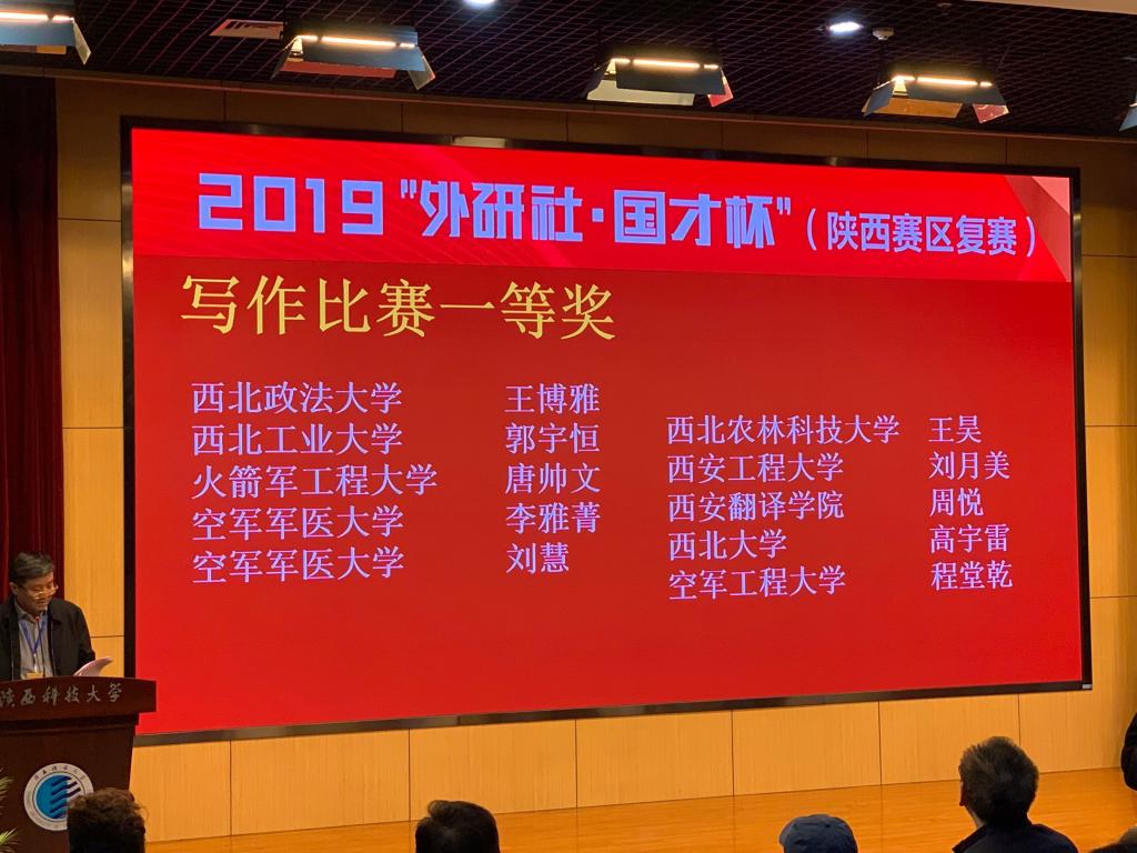由外语教学与研究出版社主办、陕西高等公司大学外语教学研究会协办、陕西科技大学承办的2019年“外研社.国才杯”全国英语演讲、写作、阅读大赛陕西赛区复赛于10月18日至19日在陕西科技大学隆重举行。共有来自全省30余所高校的100余名选手参加了本次大赛。