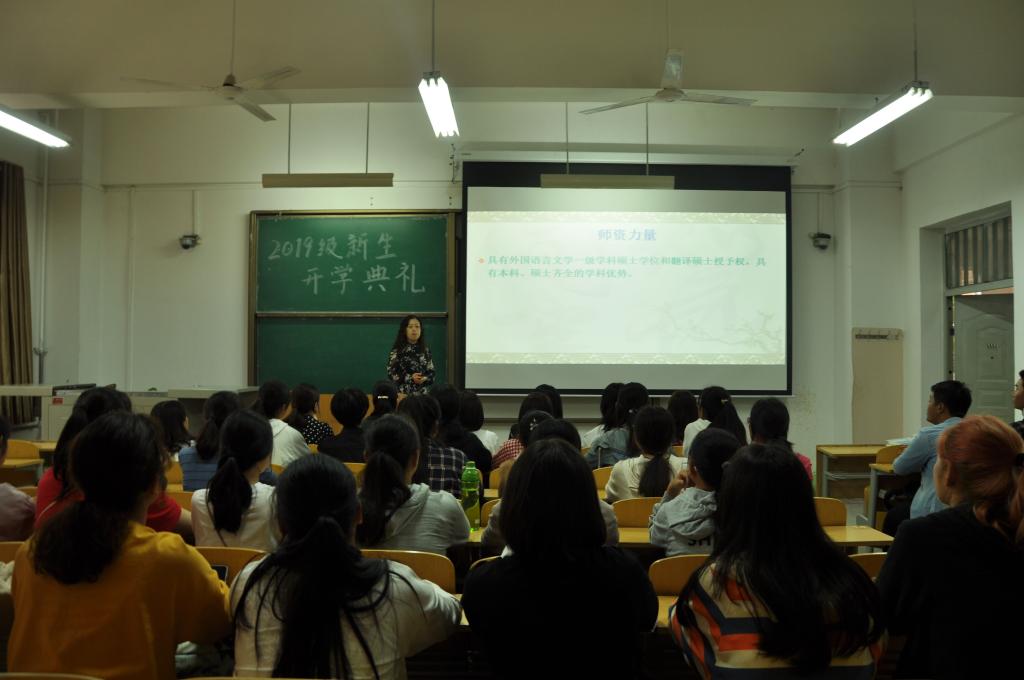 典礼结束后,各专业分别在D182、D184、D186、D188教室为新生开专业介绍会。介绍会上,各系部主任详细解读了本专业培养计划和学习规划内容,为同学们答疑解惑,有的系还请来学长以其经验教训为新生现身说法,使新生对专业、学习、校园生活有了更全面、深刻的认识。