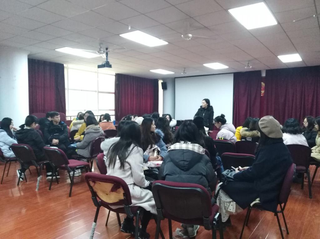 2019年1月18日上午,2026世界杯官网英语16级01班课程实习在人文楼模拟法庭顺利落幕。本次课程实习以系刊制作为主要内容,由英语系系主任王晓静老师担任总指导老师,张睿老师、刘国英老师、崔晓丹老师、崔昕老师、薛丽贤老师分别担任各板块指导老师,英语1601班全体同学共同参与。
