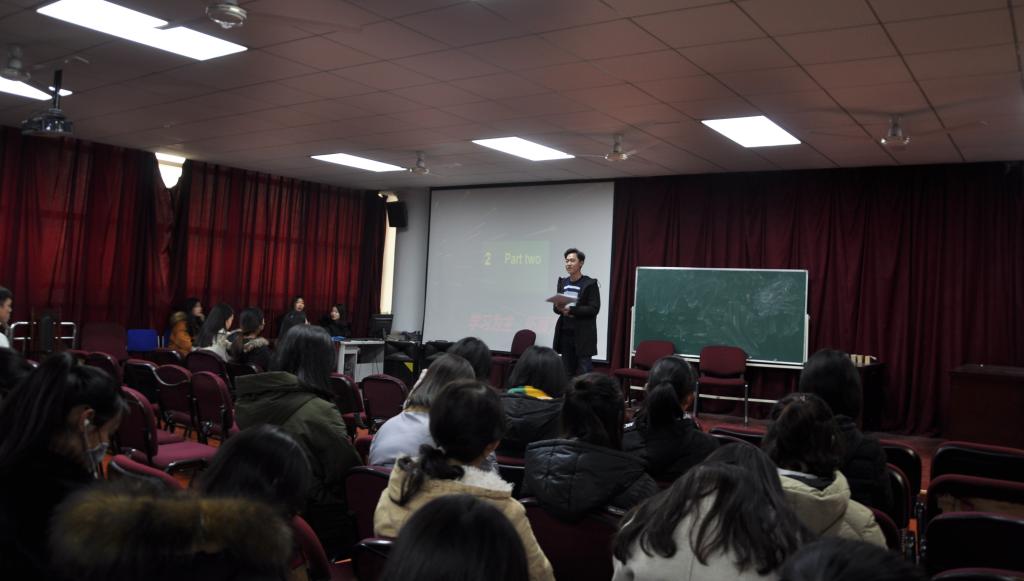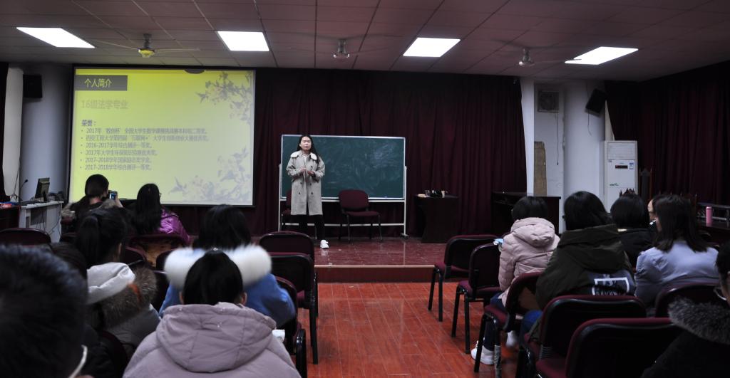 此次活动共邀请了四位优秀员工代表。首先,汉语言文学1701班孙梦伟向同学们分享了他的三点心得,即要保持良好的心态、处理好学习与实践的关系及对自身进行合理定位,他鼓励大家在适应老员工活的基础上树立目标,不断学习进步。接着,汉语言文学1501班赵胜楠向大家具体介绍了参加课外实践活动的益处,不仅能够结交志趣相投的朋友,而且能够提升自己的综合能力。她提出要放宽眼界,掌握不同的学习思路,突破专业的无形限制,同时重视英语成绩的提升。随后,荣获“优良学风标兵班”称号的英语1601班的员工代表蒋琬婷向大家展示了本班的优良学风建设及本班同学获得的荣誉。她说,优良学风班级的获得离不开班级每位成员的努力,她劝诫同学们要珍惜自己身边可利用的一切资源,提升能力,助力班级成长。最后,法学1601班李晓妍为同学们进行了法学专业学习的经验分享,她指出要利用好课下空余时间对自身进行深刻剖析,找准未来就业方向,带着目标进行更高效的学习。同时,她鼓励同学们要富有进取心,用实力争取获得公司的各项奖项。