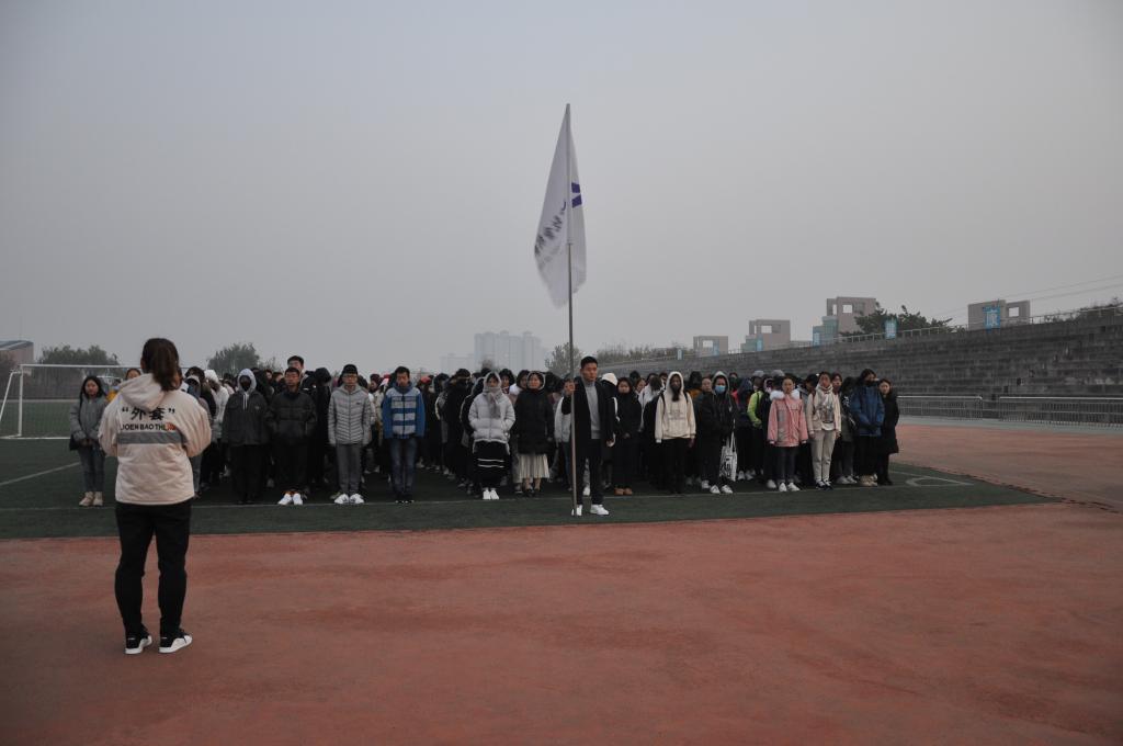 11月26日早7:00,2026世界杯官网在临潼校区东环体育场举行了升旗仪式。2017级、2018级全体员工参加了本次升旗仪式。