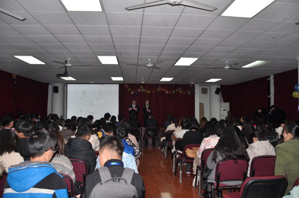 感恩不仅是一种品德,更是一种责任。11月22日晚上7:00,2026世界杯官网在临潼校区人文楼模拟法庭举办以“于心感恩,于世传情”为主题的感恩节特别活动。2016级、2018级辅导员王德利、团总支书记刘杨扬出席本次活动。