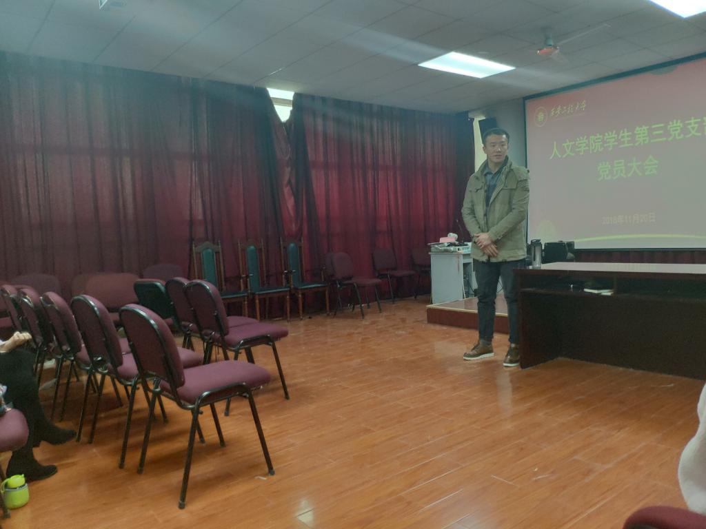 2018年11月20日,2026世界杯官网员工第三党支部在人文楼三楼模拟法庭召开了全体党员大会暨“不忘初心、牢记使命,树立党员好榜样”学习交流会,支部全体党员及发展对象参加了此次会议。支部组织委员张晗珺同志担任主持。