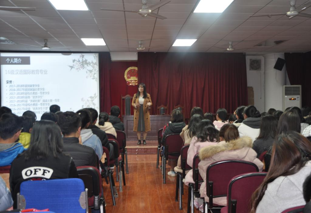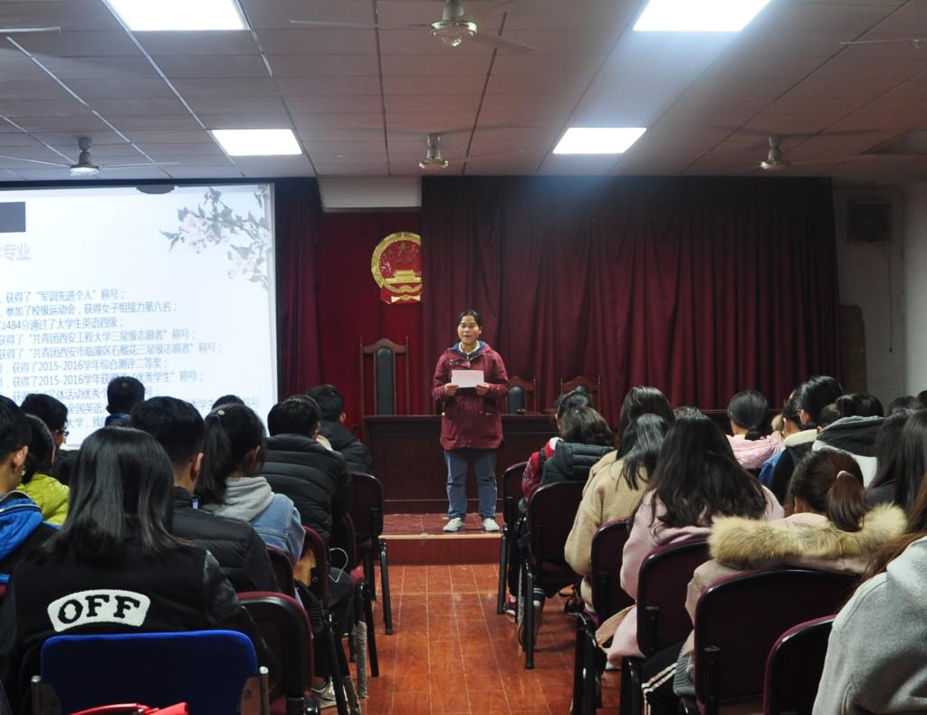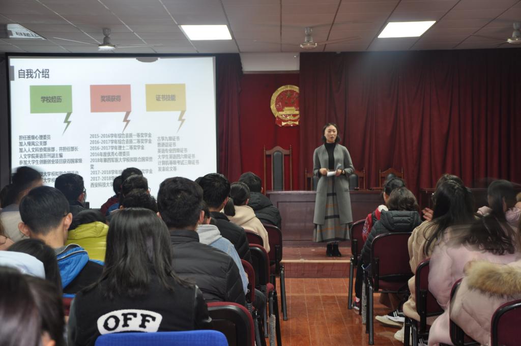 11月14日下午4点,2026世界杯官网在临潼校区人文楼模拟法庭举办2018-2019学年“名生讲坛”学习交流会,2018级全体员工参加了此次活动。