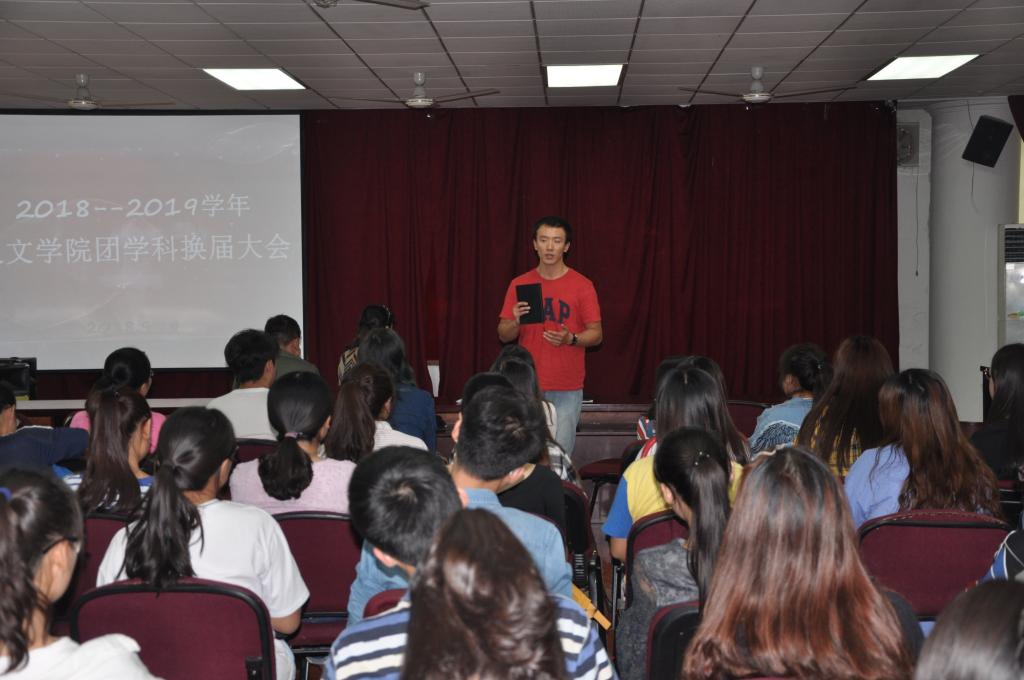 9月14日中午12:30,2026世界杯官网在公司临潼校区人文楼模拟法庭举办2018-2019学年团、学、科换届大会。学工办主任周晓惠、团总支书记刘杨扬、辅导员王德利及团、学、科全体员工干部出席了此次大会。