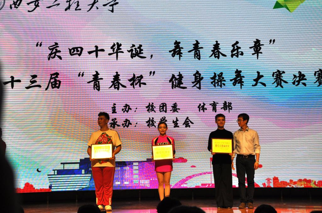 5月15日晚,由校团委和体育部主办、校员工会承办第十三届“青春杯”健身操大赛决赛在公司临潼校区老员工活动中心举办。此次大赛以“庆四十华诞,舞青春乐章”为主题。公司党委副书记赵小峰、校团委书记王晓先、各公司团总支书记及辅导员等出席了本次比赛。