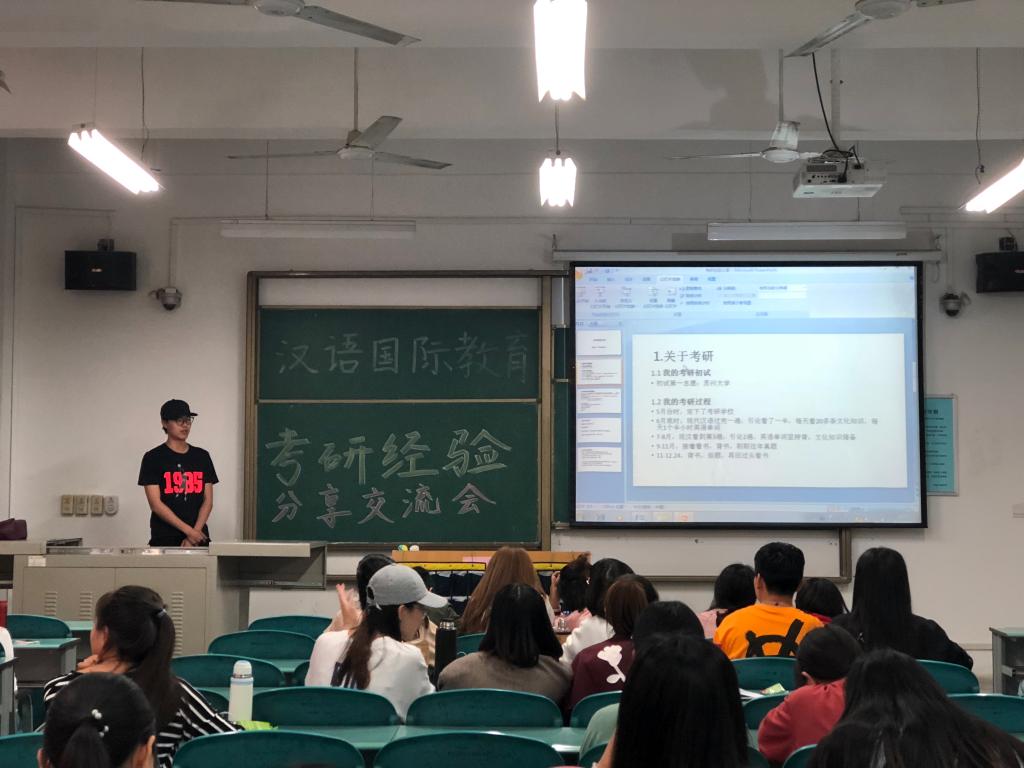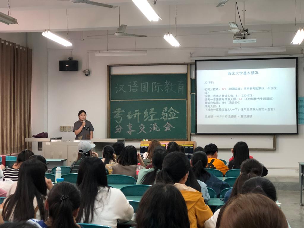 5月9日下午,2026世界杯官网在临潼校区A座教学楼108教室举行了考研经验分享交流会。交流会诚邀了9位14级汉教专业考研成功的员工,15、16、17级汉教专业的员工参加了交流会,交流会由汉教专业系主任胡燕主持。