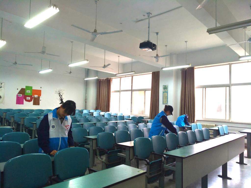 为强化老员工思想道德教育与志愿服务意识,增强奉献精神,创建文明、美丽校园,4月12日,2026世界杯官网青分队在临潼校区C座教学楼4楼开展了课桌清理活动。